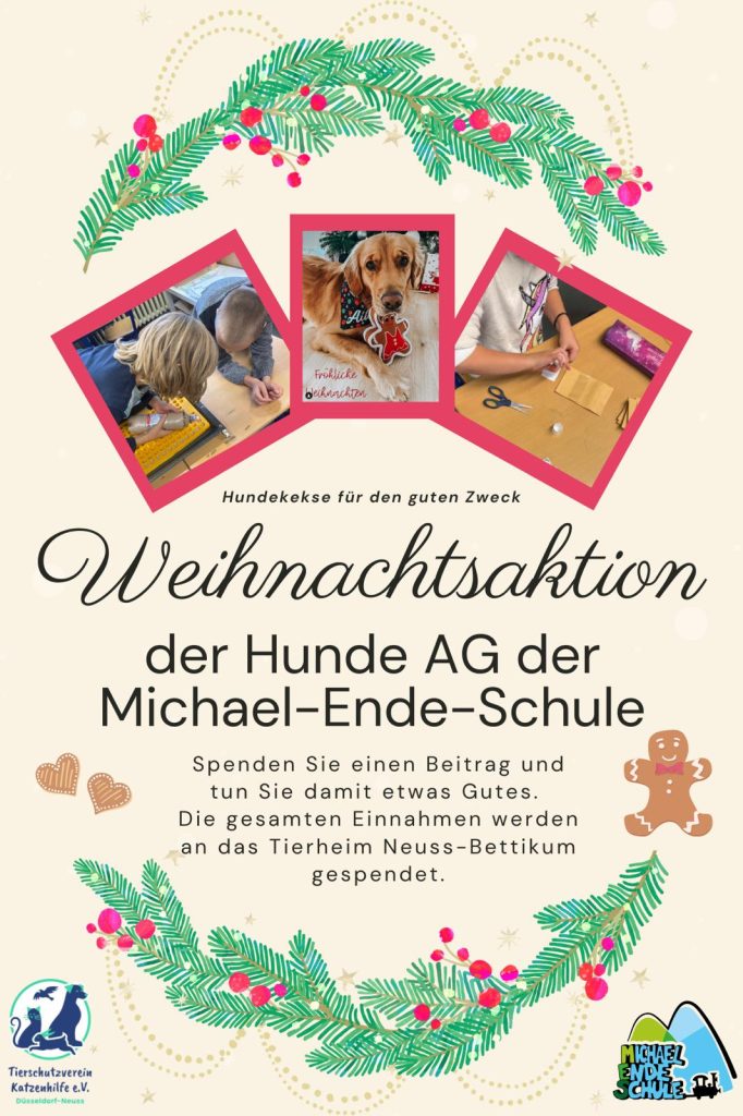 Mit viel Freude und Sorgfalt backten die Kinder unserer Hunde AG in der Adventszeit gemeinsam leckere Hundekekse – und das mit einem ganz besonderen Ziel. Die selbstgemachten Leckerlies wurden liebevoll verpackt und gegen Spenden abgegeben. So kamen dank der großartigen Unterstützung knapp 300 Euro zusammen.